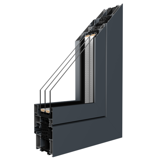 Un système à 5 chambres avec une profondeur d’installation (largeur du cadre) de 76 mm qui fournit une protection thermique à un niveau très élevé de 0,82 W/m²K.