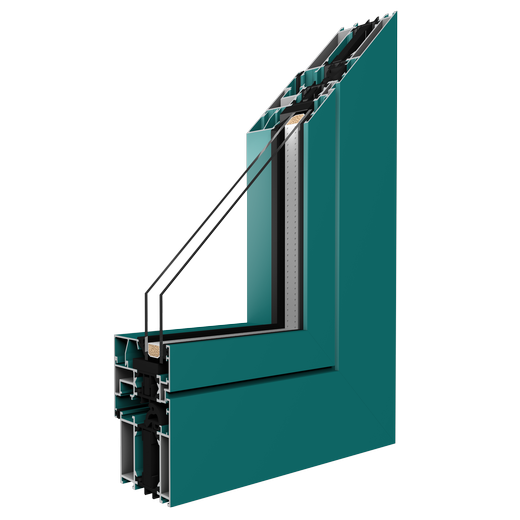Un système avec une profondeur de montage de 82 mm, une géométrie de cadre à 7 chambres et une géométrie d’ouvrant à 6 chambres.