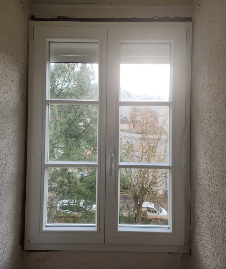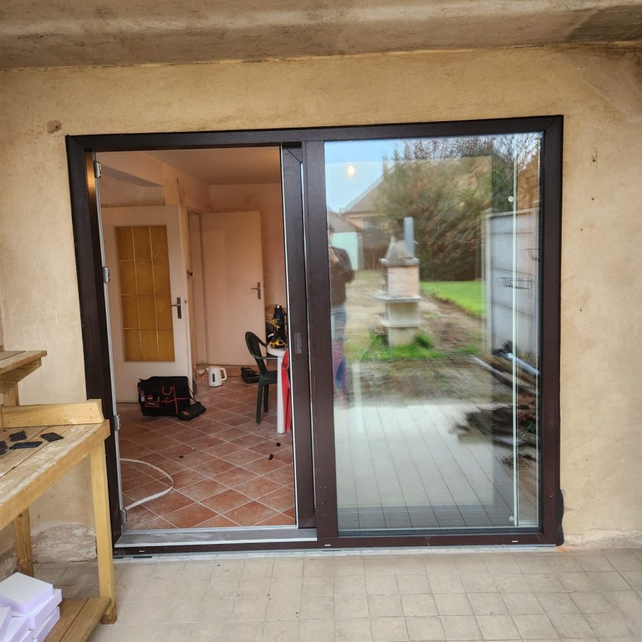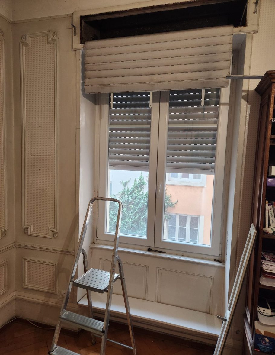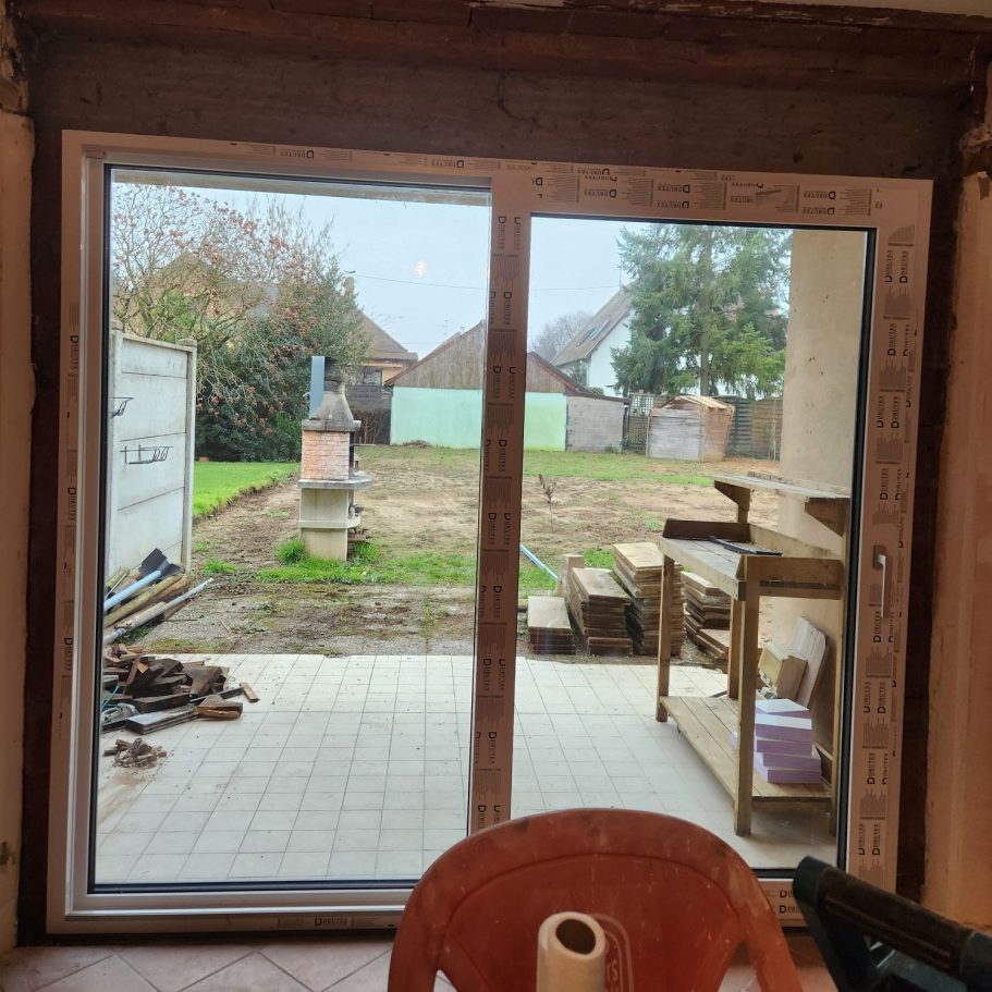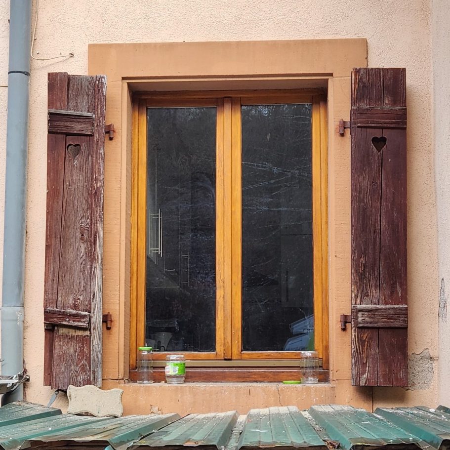 Rénovation complète de menuiseries : remplacement de fenêtres anciennes, volets et portes, avec gestion complète des déchets et nettoyage du chantier