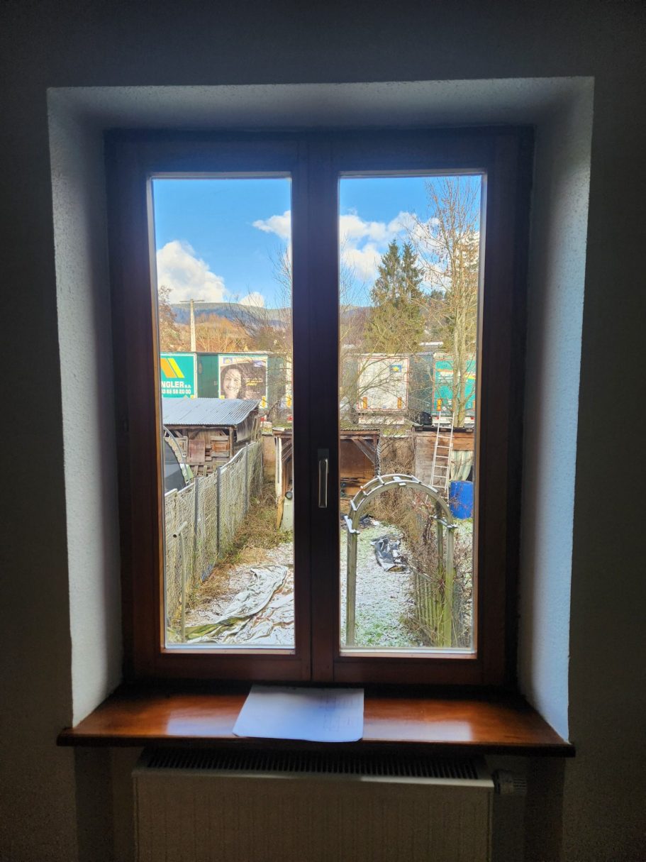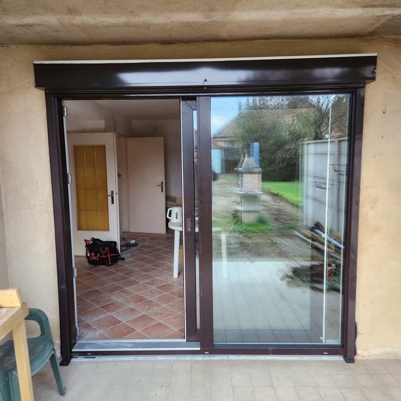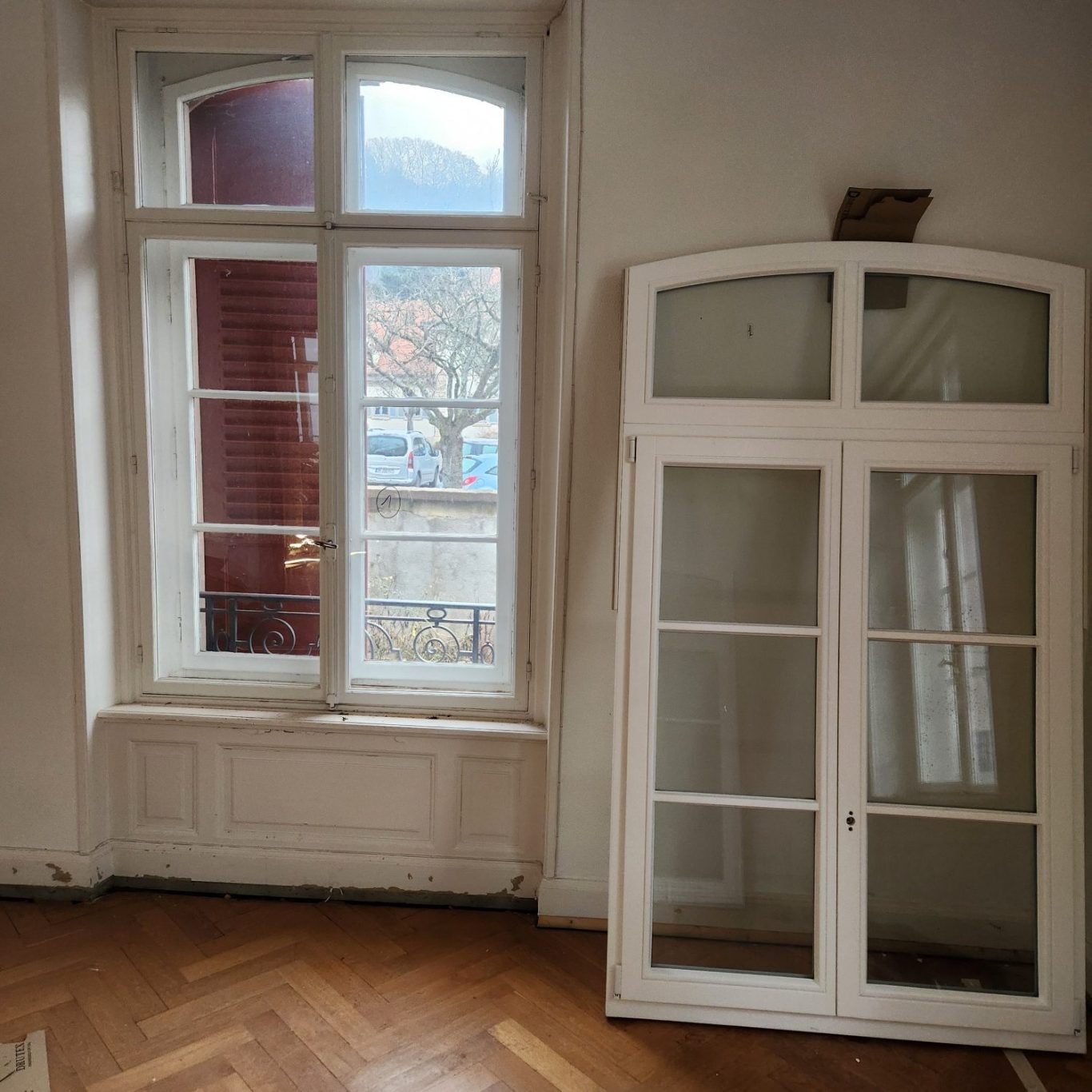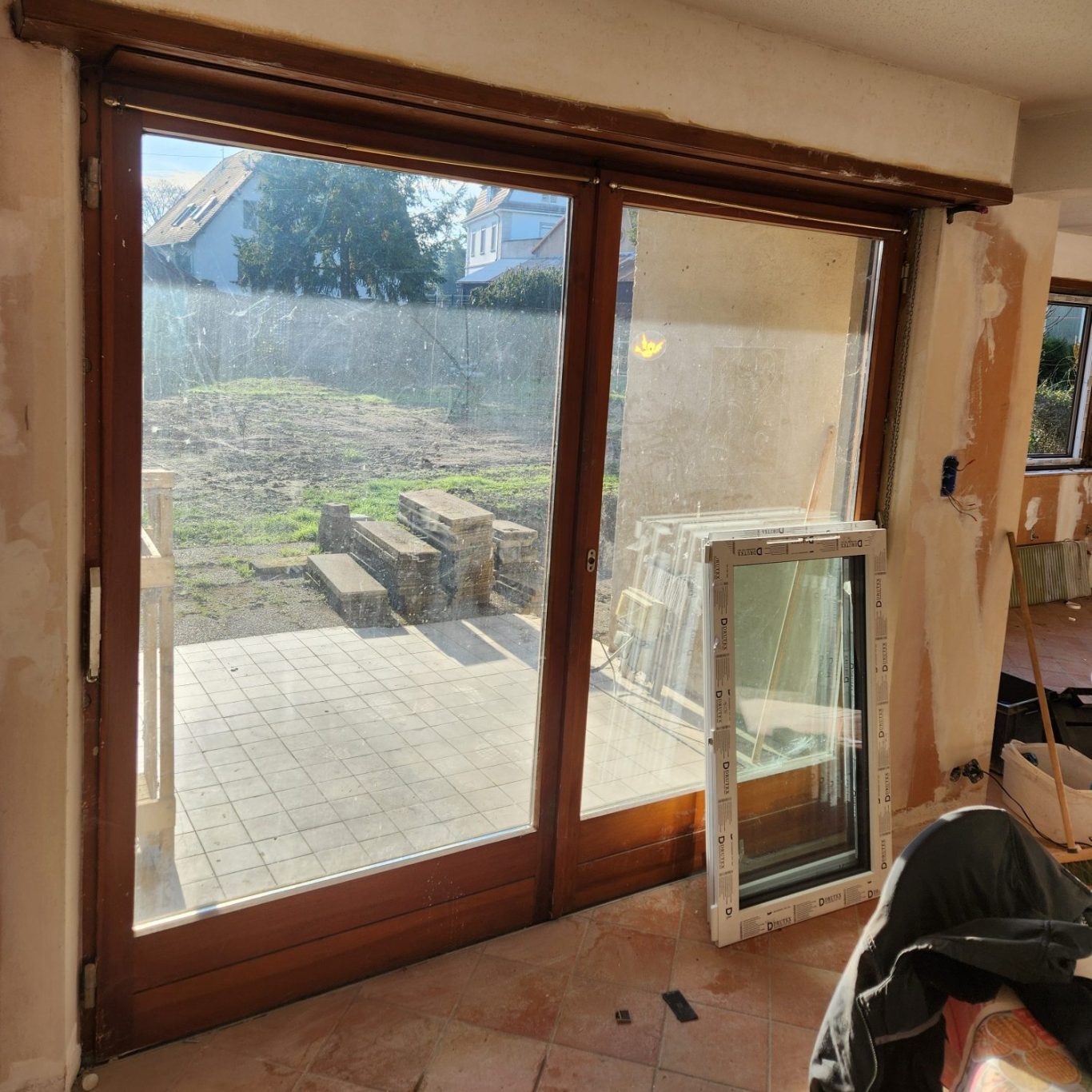 Rénovation complète de menuiseries : remplacement de fenêtres anciennes, volets et portes, avec gestion complète des déchets et nettoyage du chantier
