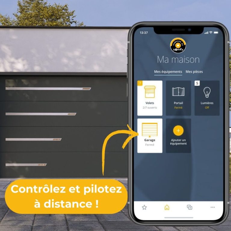 Avec les moteurs Somfy contrôlez vos volets, portes de garage où que vous soyez depuis votre smartphone.